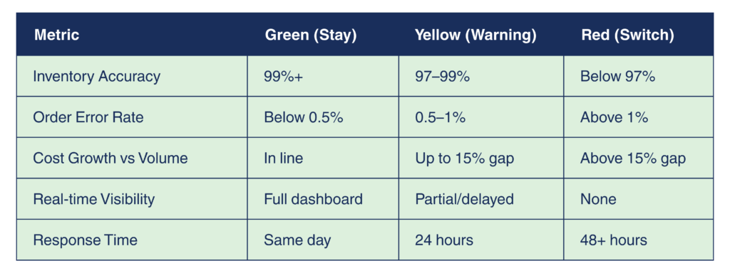Before you start the RFP process, have one direct conversation with your 3PL. Tell them exactly what the problems are and what your timeline is for seeing improvement. Use specific numbers, not “your accuracy is bad” but “your inventory accuracy was 97.3% last quarter and I need it at 99% within 60 days.”